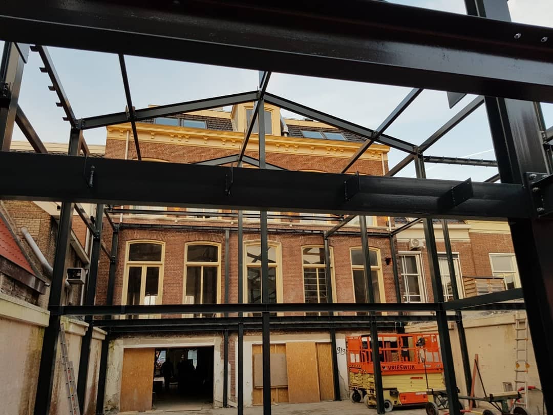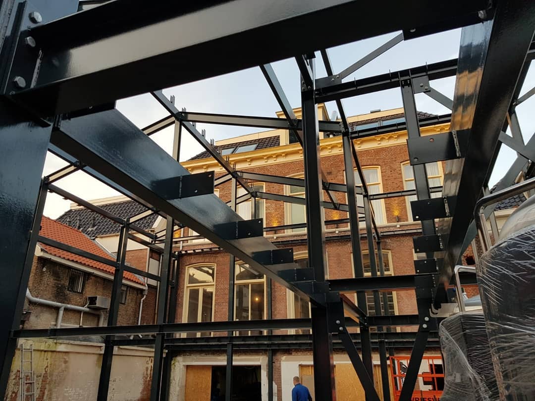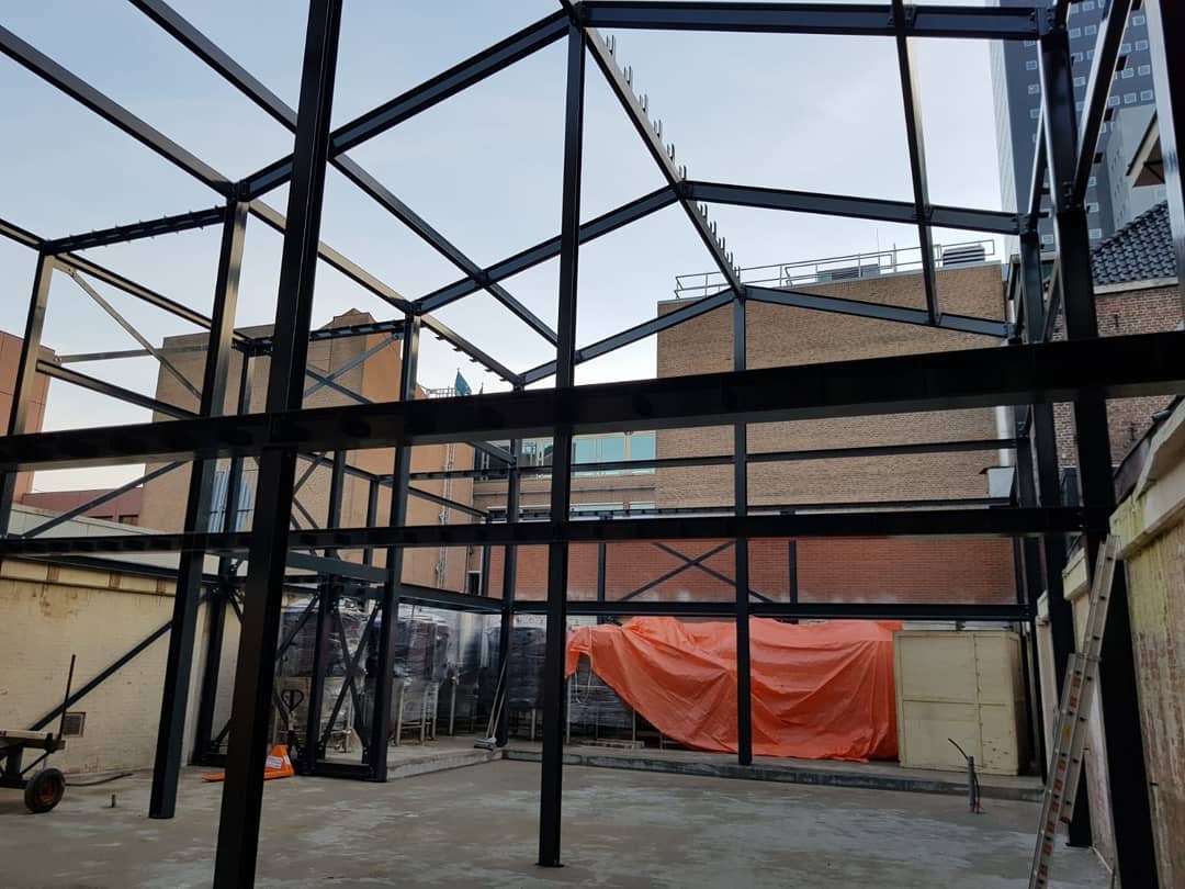 In de binnentuin van In de Brouwerij is maar liefst 18 ton aan staal geplaatst.