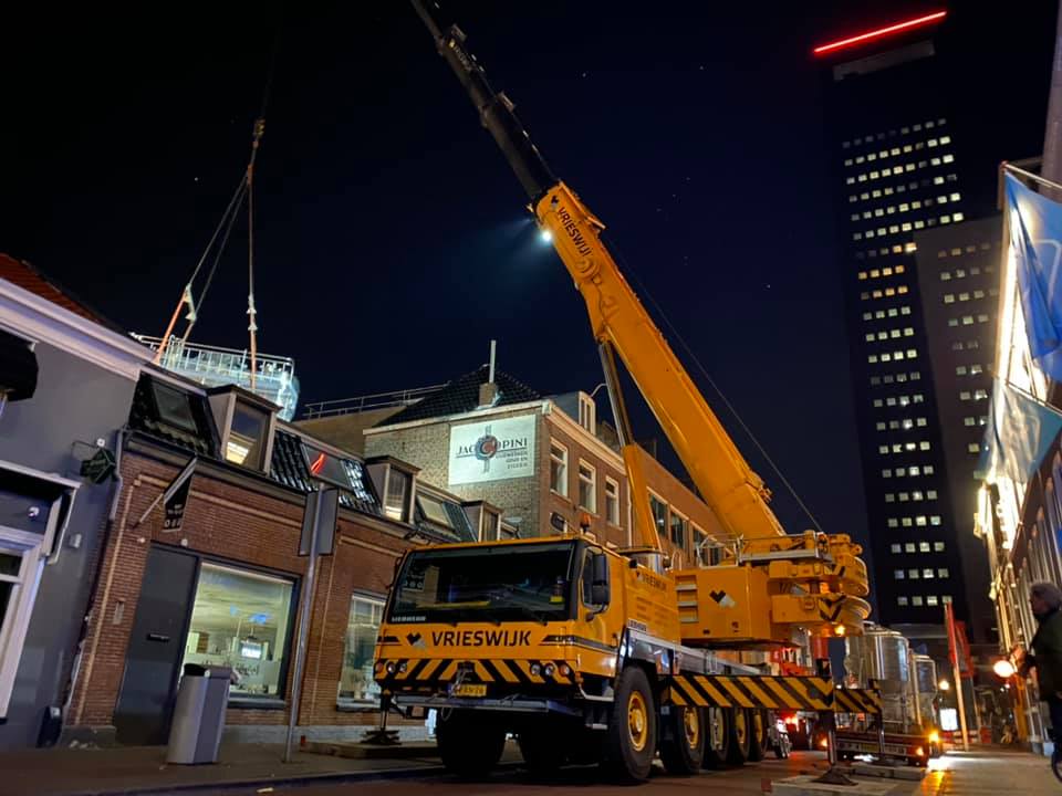 Afgelopen nacht zijn in het centrum van Leeuwarden de bierketels In de Brouwerij getakeld.