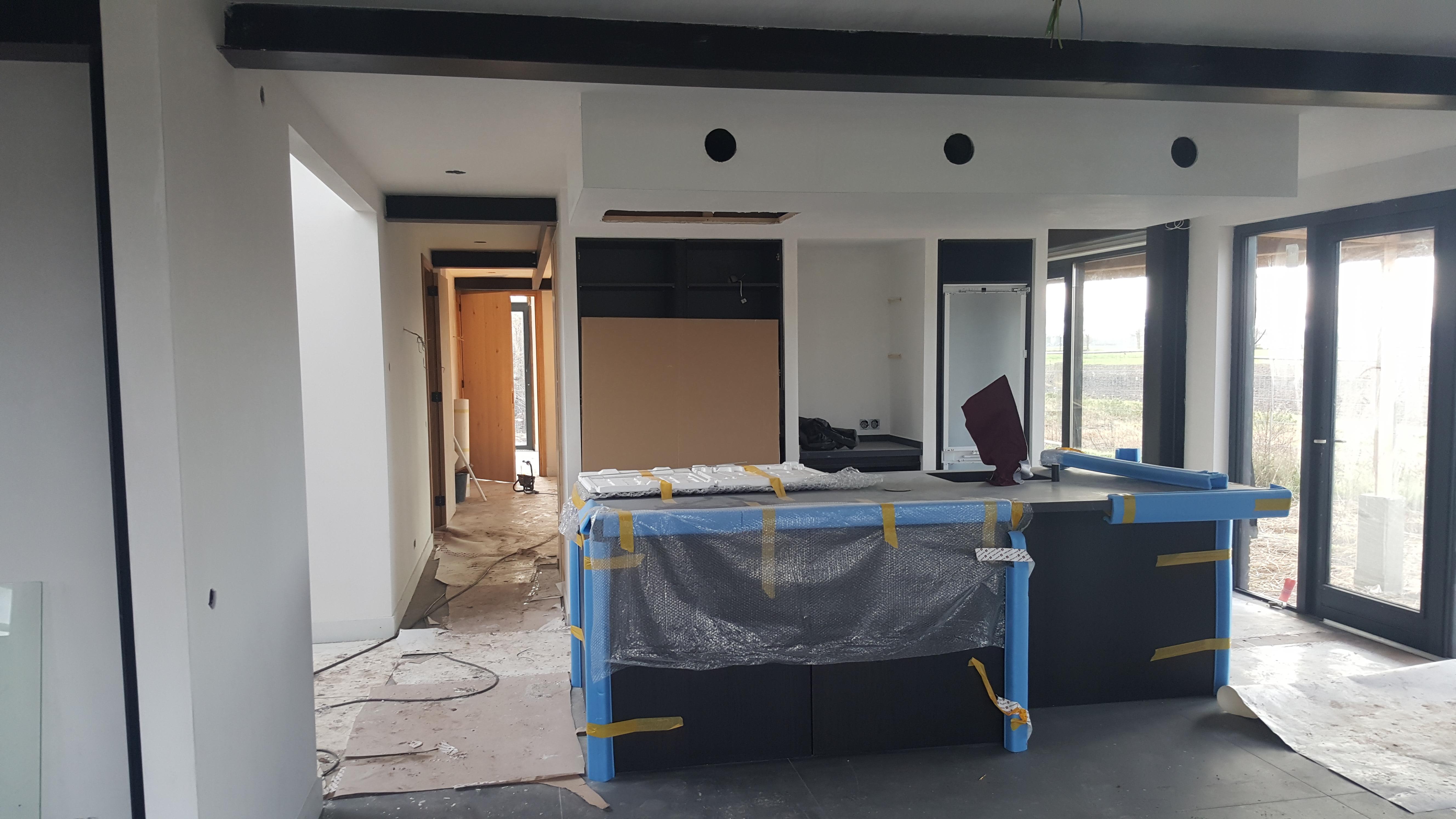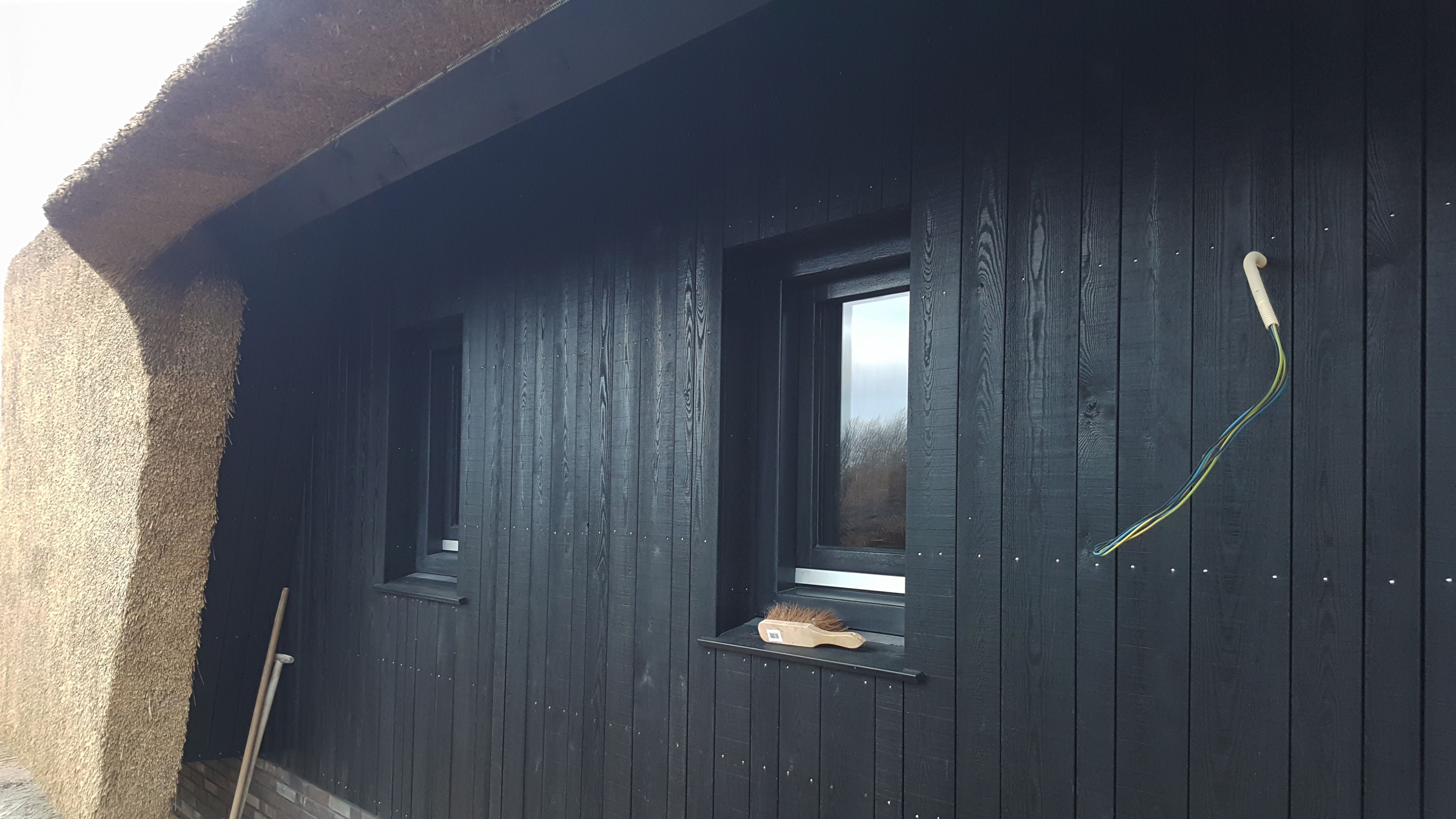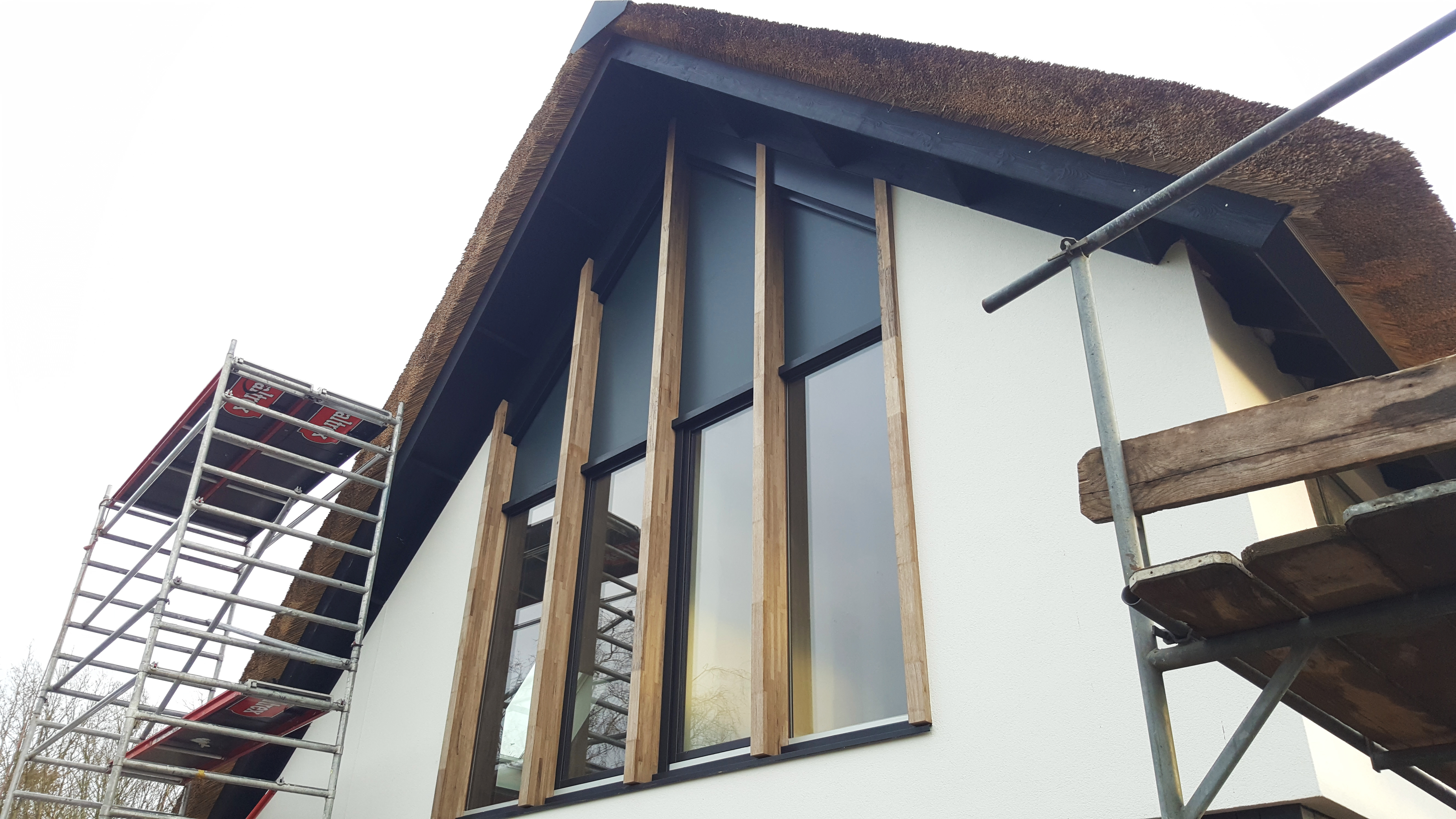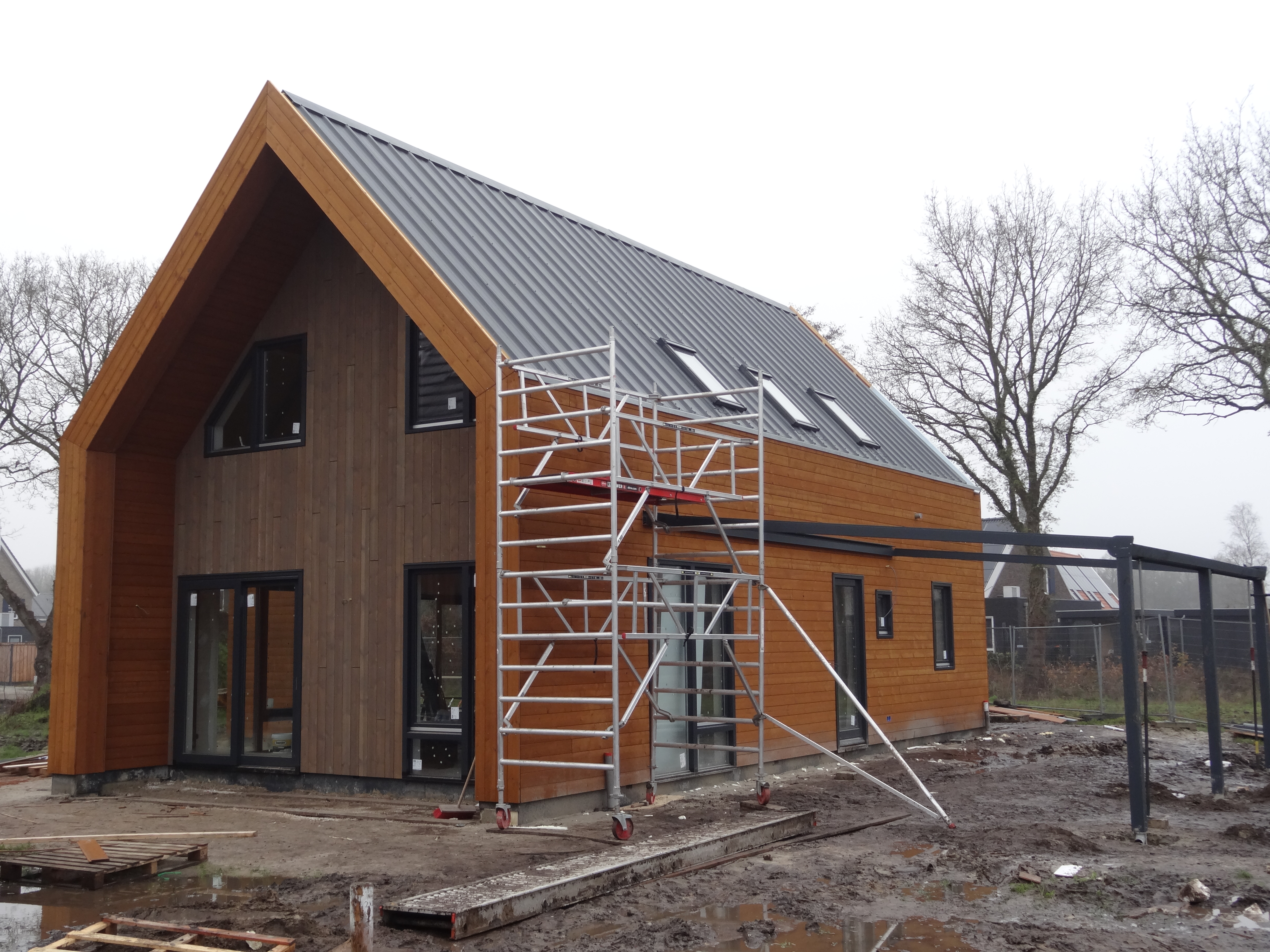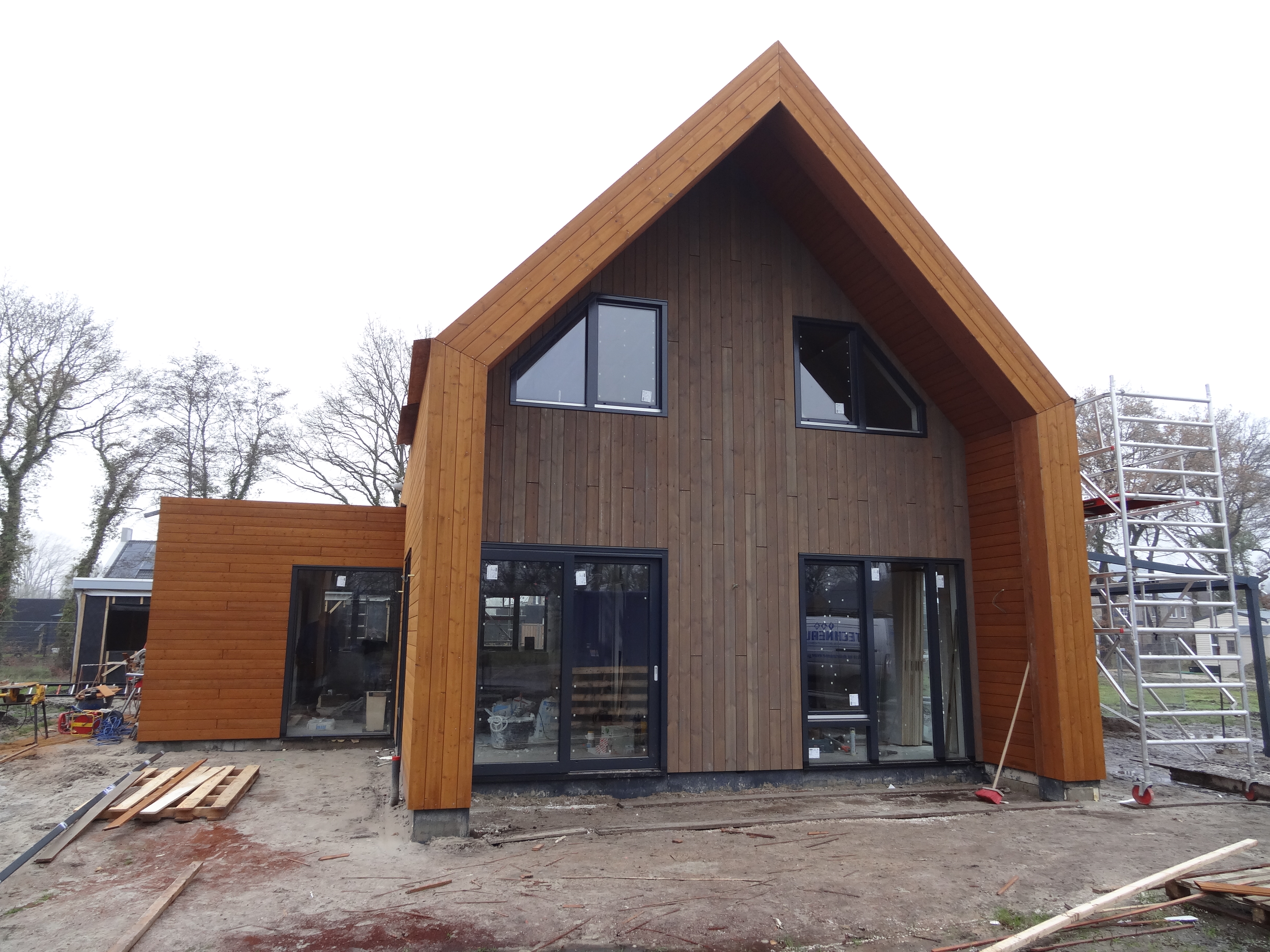 Aan de Fortiwjk in Veeningen wordt hard gewerkt aan de afbouw van het moderne rietgedekte landhuis.