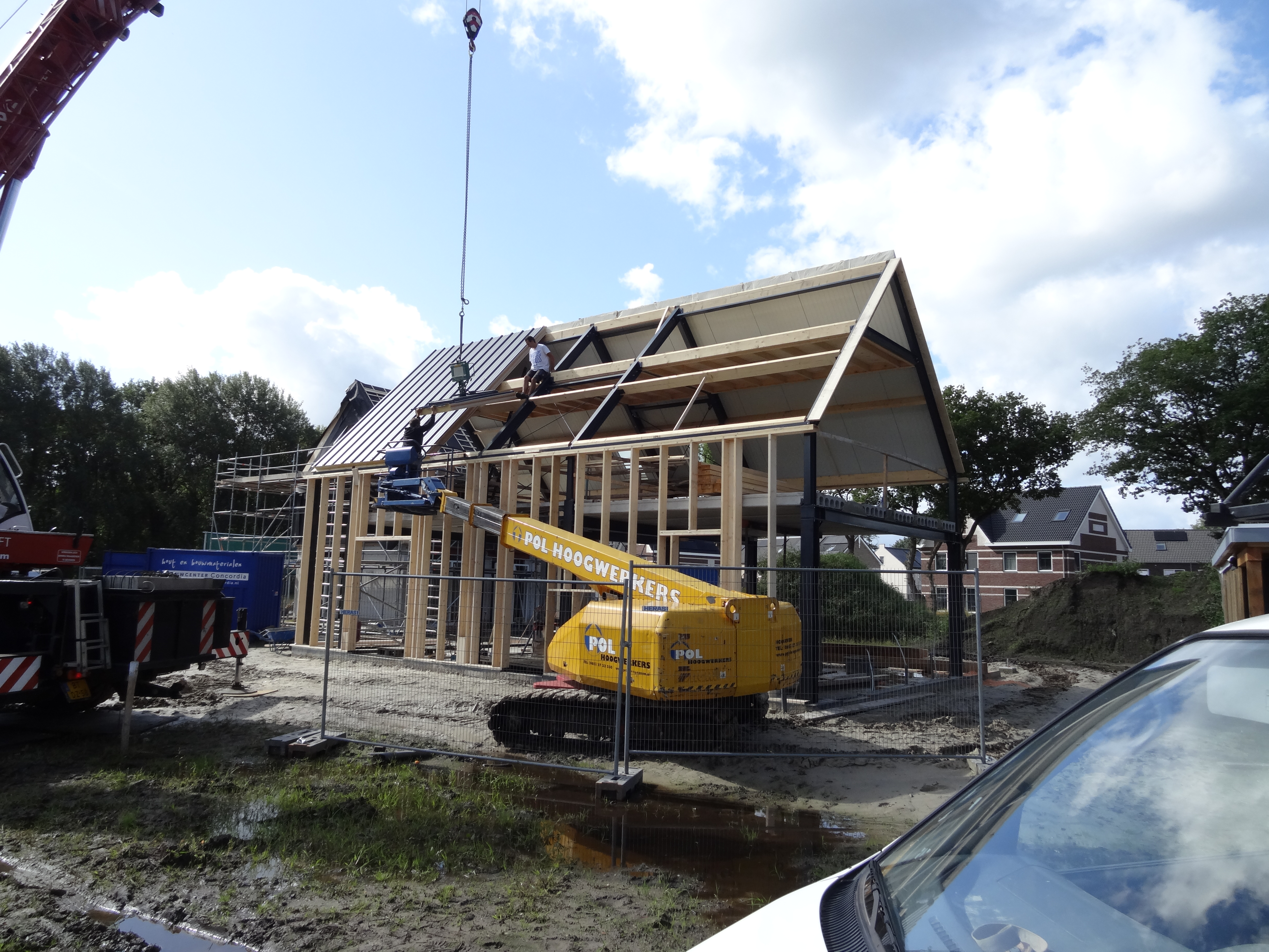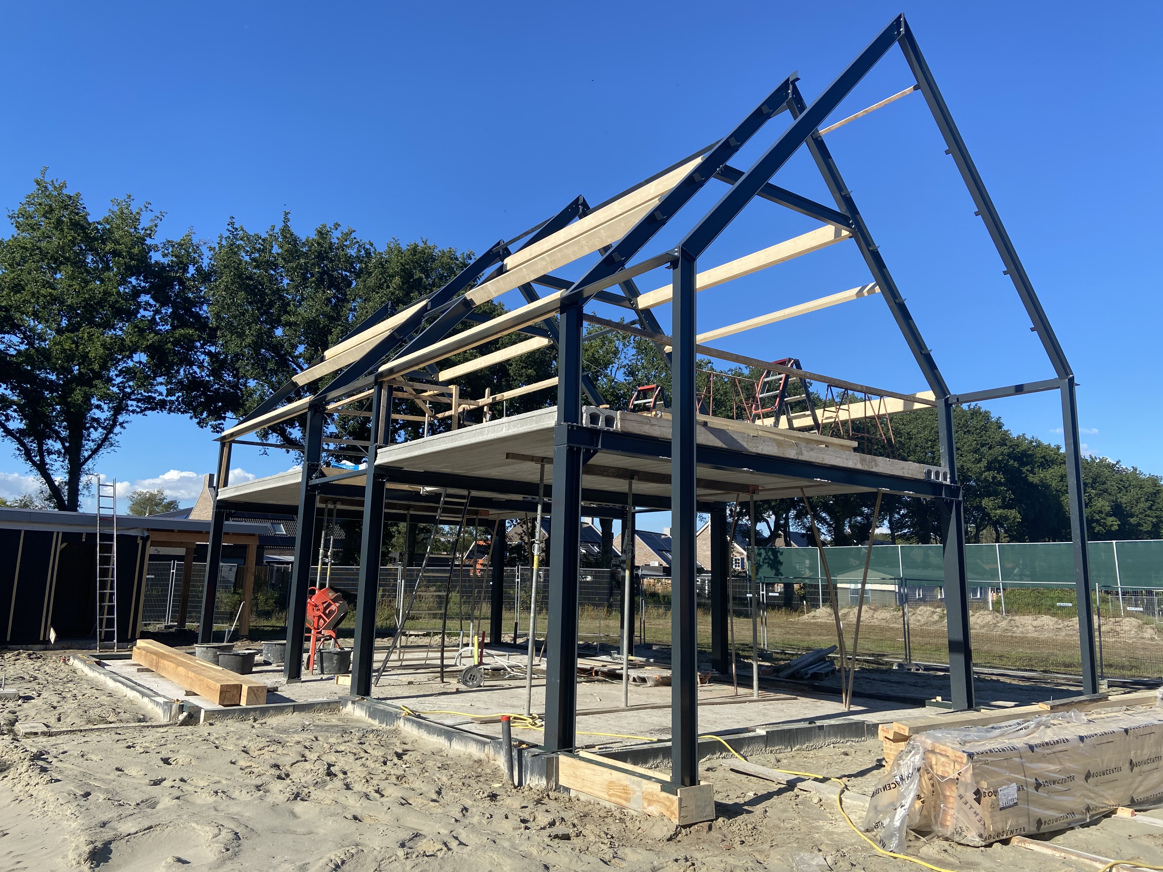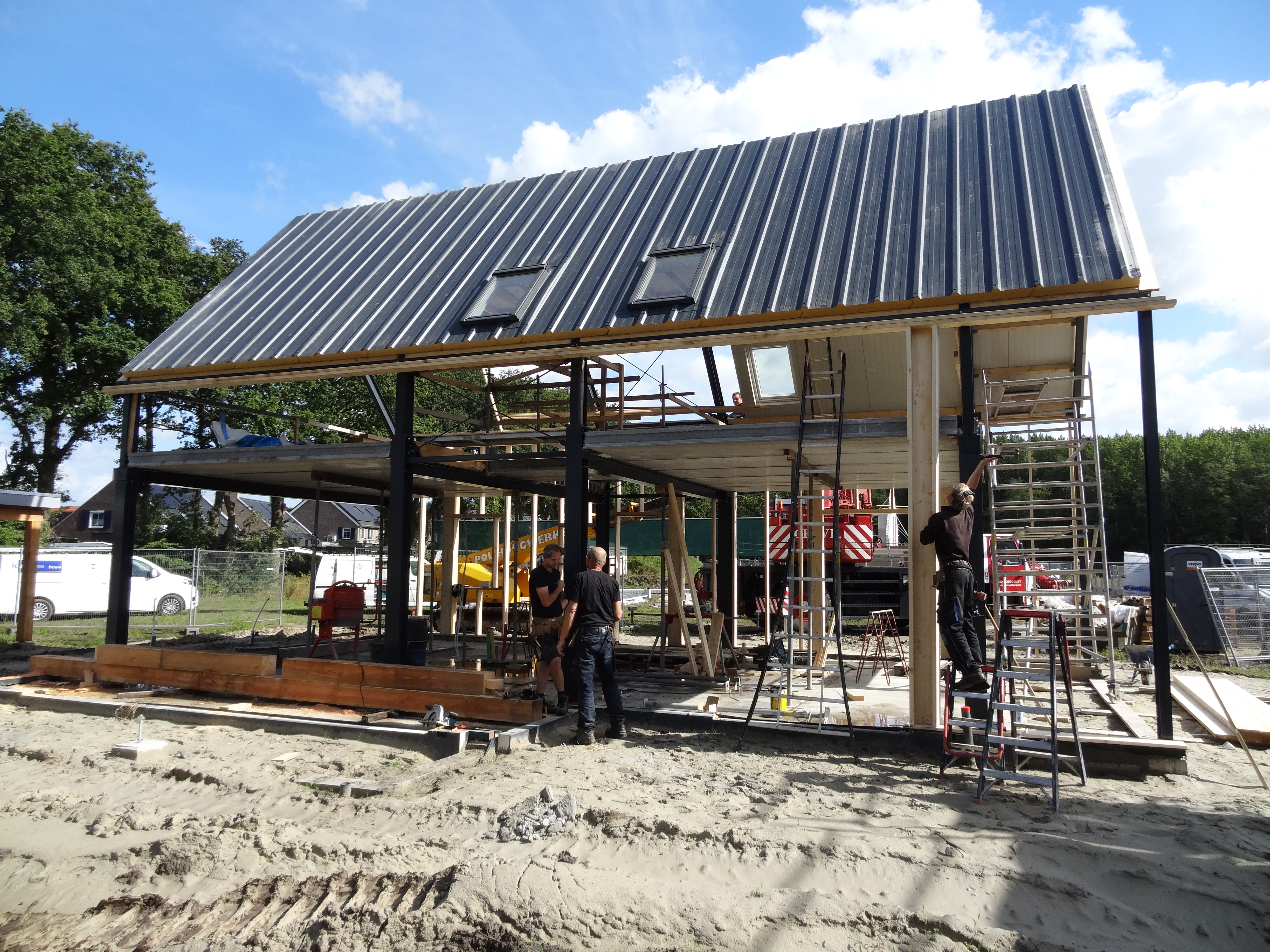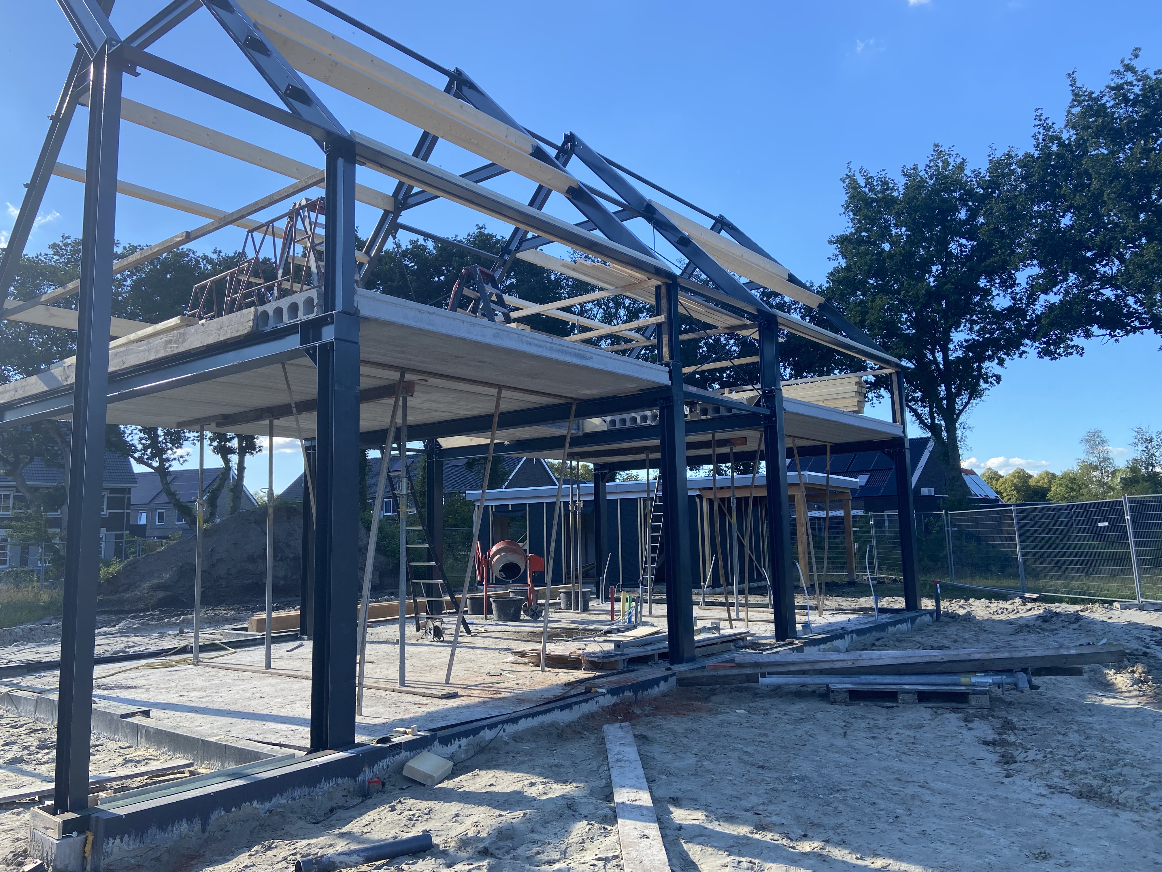 Op Woonpark Diepstroeten (nieuwbouwwijk te Assen) is de staalconstructie voor een nieuwe schuurwoning geplaatst..