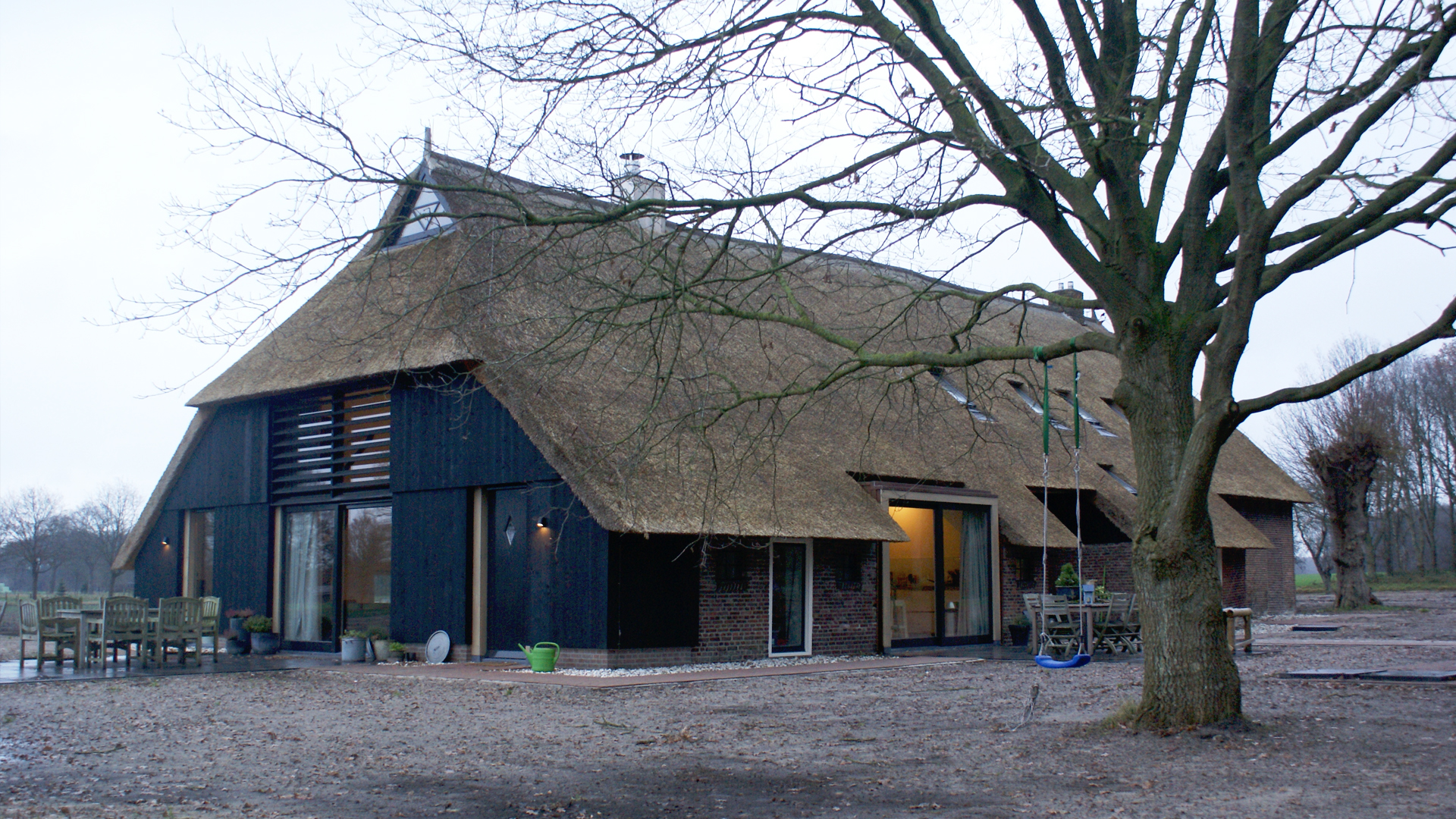 Samen met nieuwe bewoners heeft architektenburo Van Ruth bv een plan gemaakt voor de restauratie + verbouw van de boerderij, tussen de herstelde gebintenconstructie en onder de nieuwe rieten kap is een licht woonhuis gecreerd waarin nieuwe en oude elementen samenkomen.