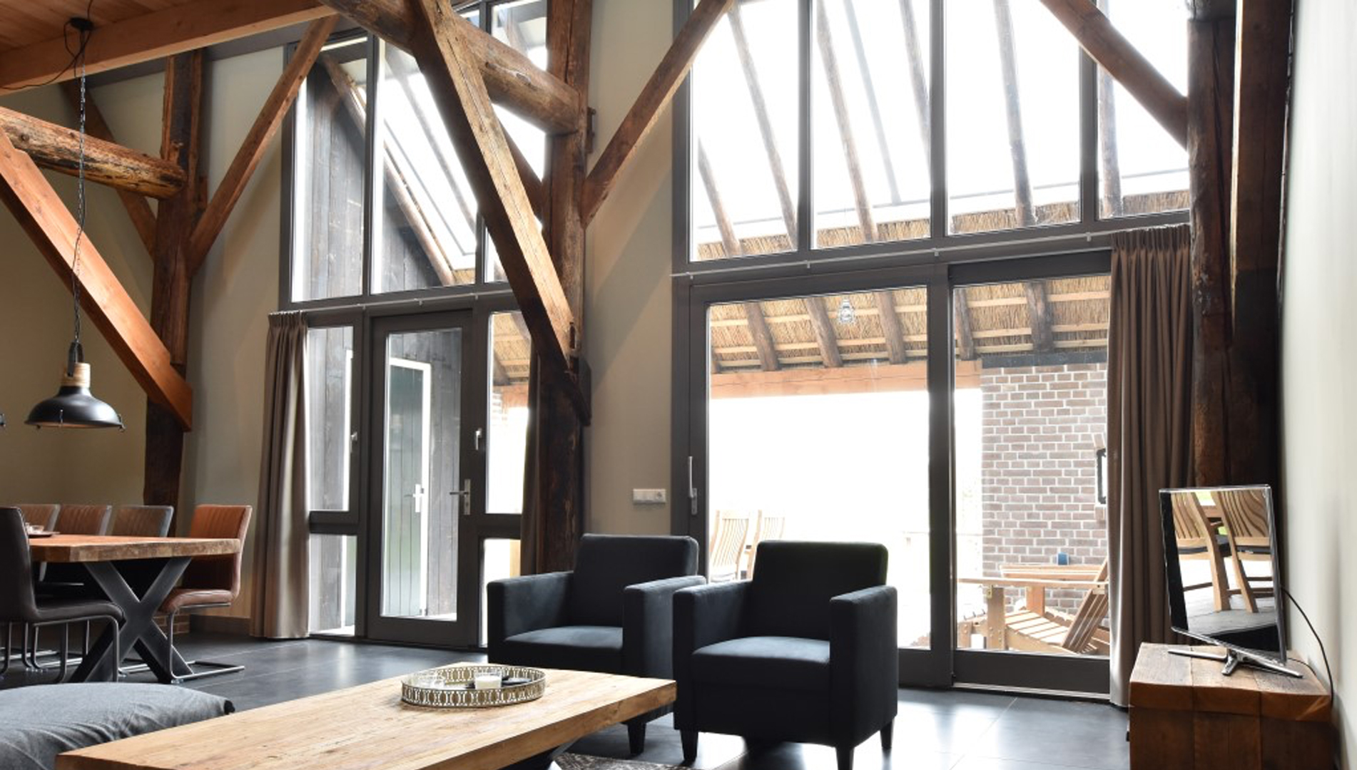 Lhee - Architektenburo Van Ruth bv heeft een plan gemaakt voor de verbouw van een woonboerderij. In het achterste gedeelte van de boerderij (de deel) zijn twee woningen gerealiseerd.