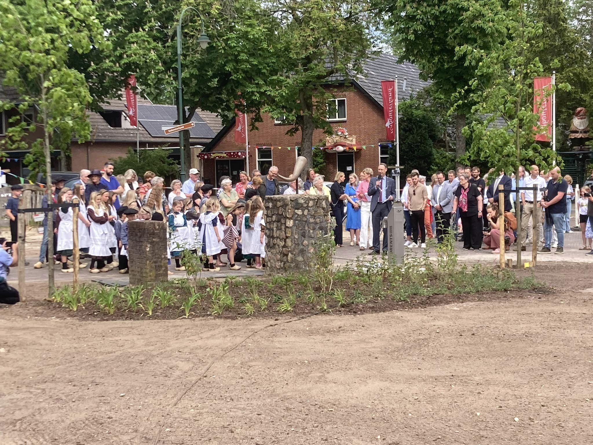 EXLOO – Na jaren is het dorpshart aan de Zuiderhoofdstraat van Exloo weer gevuld. Sinds 2017 was er een gapend gat door de brand bij het Bebinghehoes, maar donderdagmiddag werd het geheel vernieuwde dorpsplein in ere hersteld met de opening van het Hallenhoes.