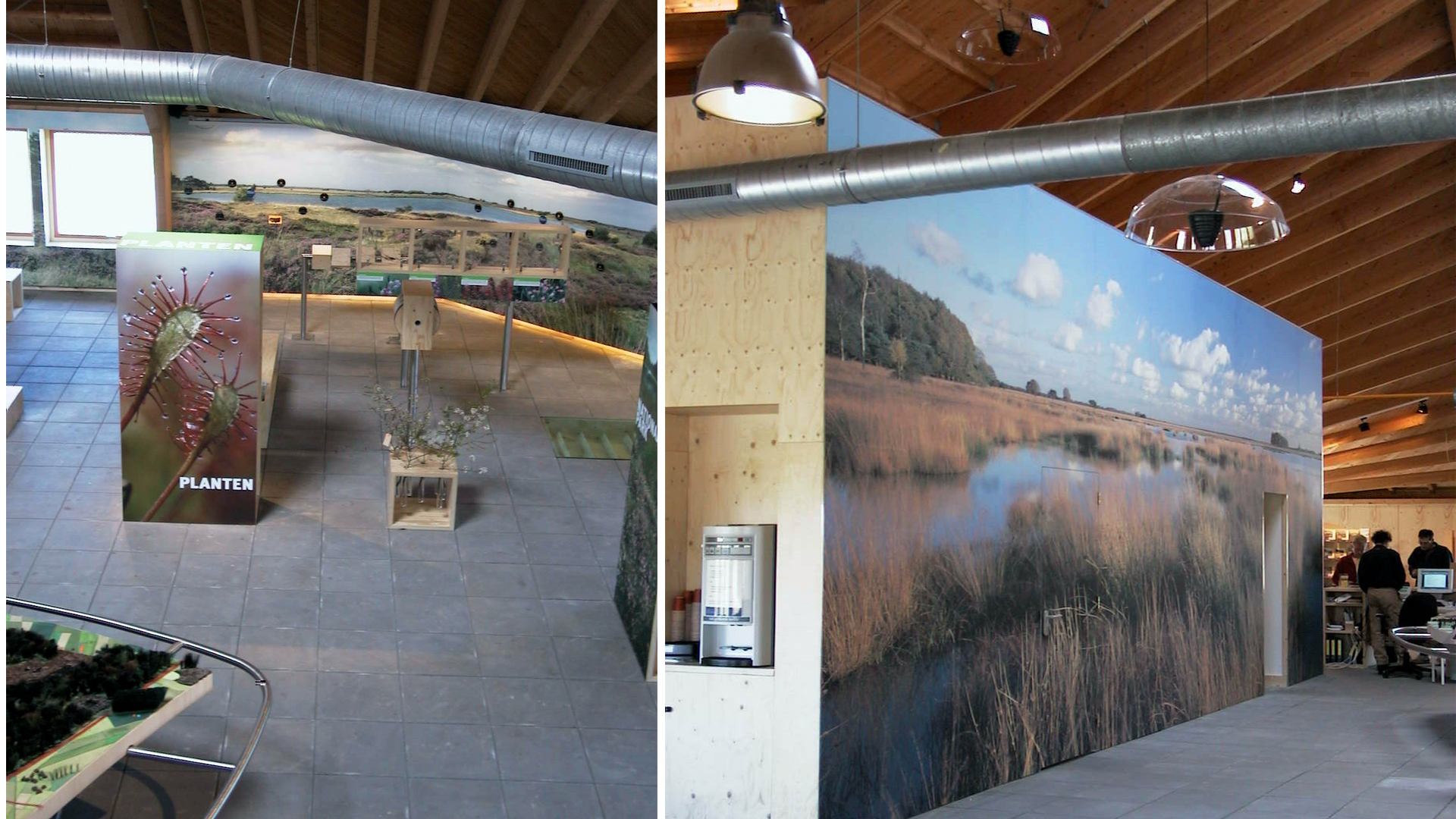 Het bezoekerscentrum dwingelderveld dat ligt in het gelijknamige nationaal park fungeert als de poort naar de natuur. Het wordt door zijn materialisering en kleurstelling geheel opgenomen in zijn omgeving. Het dak bestaat uit mossen en sedums en de wanden zijn van hout in een blauwgrijze kleur. Intern is de houten dak constructie die geheel overspannen wordt prachtig zichtbaar.