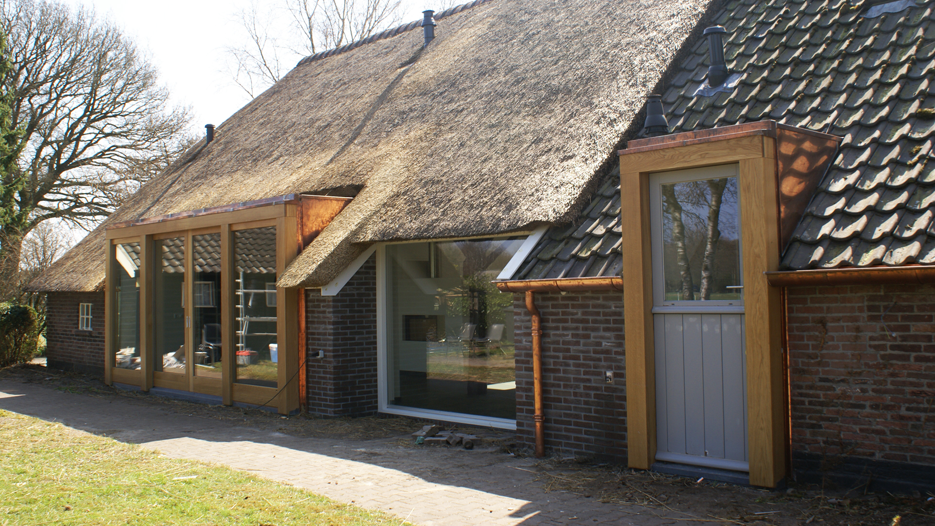 In overleg met de opdrachtgever is er voor gekozen om aan de buitenzijde enkele minder passende ingrepen uit het verleden in ere te herstellen. Intern is de woonboerderij geheel gestript op enkele dragende binnenwanden, de gebintenconstructie en de buitenschil na is alles vernieuwd. de opdrachtgever wilde een licht, modern en ruimtelijk interieur. het donkere en hokkerige interieur is getransformeerd tot een eigentijdse ruimte en open woonruimte.