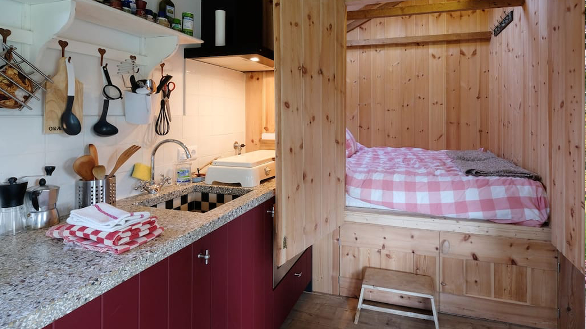 Het voorhuis van de boerderij is ingericht als Bed&Breakfast met een eigen woonkamer 2 slaapkamers en een badkamer. In het achterste deel van de boerderij is, tussen de oude gebinten, een ruime en lichte woonruimte gerealiseerd voor de bewoners. Achter in de tuin is een oude varkenstal verbouwd tot een kleine vakantiewoning.
